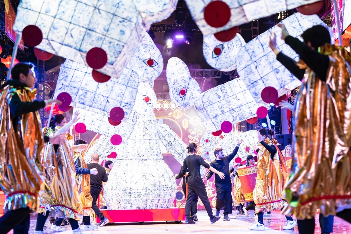 香港新聞網1月27日電 音樂聲連連,花車一輛輛,盛裝的演員,歡笑的觀眾,匯聚成夜晚歡樂的海洋,澳門“兔躍盛世 歡樂春節2023年農曆新年花車匯演”於年初三喜慶開場。18輛花車、逾1,000名演員,和著歡快的音樂依次登上400多平方米的大型LED舞台歡樂歌舞,將澳門連成一座吉祥歡樂的不夜城。