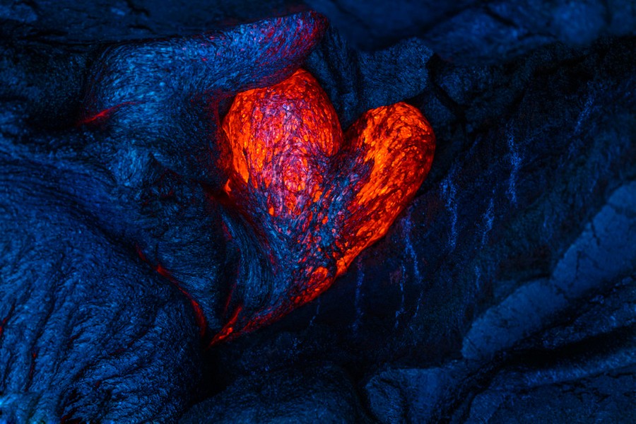 瑞士Lagh de Calvaresc(圖片:瑞士國家旅遊局) 瑞士有不少心形湖。這個位於海拔2,214米處的藍色心形湖,名為Lagh de Calvaresc,座落在聖貝納迪諾山口(San Bernardino Pass)的山脈中,聖貝納迪諾山口是連接格勞賓登州和提契諾州的阿爾卑斯山口。看來只有擁有冒險精神、願意在山中遠足的人士才能獨享這既漂亮又浪漫的奇特景觀。 夏威夷島火山熔岩