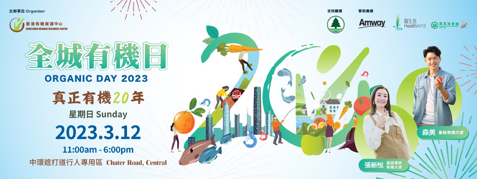 全城有機日2023於3月12日舉行 “全城有機日”實體版回歸 市民生活逐步復常,今年的“全城有機日”也終於以實體形式回歸,為香港市民帶來停不了的精彩活動,適合一家大小參與,齊撐本地有機,歡度“有機”周末!活動當日將由香港有機資源中心總監黃煥忠聯同一眾主禮嘉賓主持“全城有機日2023”開幕禮,為這項年度有機界盛事揭開序幕。早前特別為“全城有機日2023”拍攝宣傳片的星級有機大使森美及張新悅也將參與開幕典禮,在Chit Chat環節與現場觀眾互動交流,分享她的低碳生活小貼士,並以動人歌聲推廣有機生活。除了台上的表演外,家長還可與小朋友一起參與台下多個攤位遊戲,讓小朋友以輕鬆富趣味的方式,增進有機產品及環保知識。此外還有不同的有機工作坊,讓市民學習以環保而有趣的方法,響應綠色低碳生活。