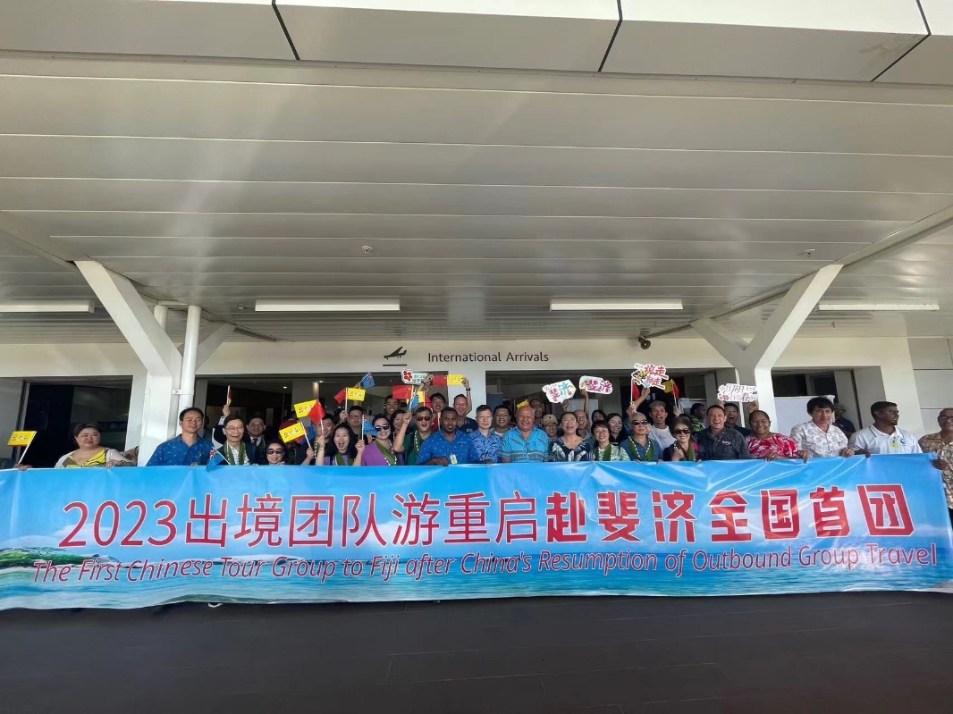 斐濟旅遊行業非常重視疫情後,首個復航航班中國旅遊團的到來。對此,斐濟旅遊局與中國駐斐濟大使館、斐濟航空、斐濟楠迪國際機場通力協作,為中國遊客舉辦了盛大的歡迎儀式。斐濟楠迪國際機場在航班抵達時進行了“水門禮”,斐濟旅遊局也為中國遊客帶來了斐濟沃藝術中心舞蹈團(VOU Dance Group)的表演,以及斐濟傳統“Bu”文化儀式。與此同時,斐濟當地零售企業Jack's of Fiji還為中國游客,獻上了特色手工製品“Tanoa”禮包。疫情後首批中國遊客旅行團全方位體驗了斐濟熱情好客的Bula精神(Bula Spirits),深刻感受斐濟的文化和魅力,收獲快樂的斐濟旅遊體驗。 中國駐斐濟大使館參贊馬國良表示:“中國市場是斐濟經濟的重要市場之一,疫情前,中國遊客入境人數排名前五。中斐友好交往源遠流長、跨越山海,200年前即有中國人來到斐濟,成為斐濟多民族大家庭的一部分。香港—楠迪航線復航,標誌著兩國人員往來全面恢復,必將有力促進包括旅遊在內的中斐各領域交流合作。” 為了更好地方便中國遊客前往斐濟旅遊,斐濟航空(Fiji Airways)從本月起每周安排兩班香港直飛楠迪的航班,由空客A330機型執飛。 【編輯:黃璇】