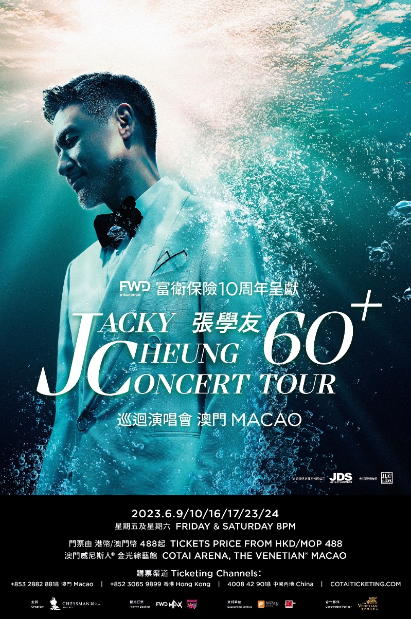 出道至今接近四十載,張學友自由穿梭於不同音樂風格,為華語樂壇帶來首首經典名曲,由抒情曲風到勁歌熱舞,一次又一次在歌聲、舞技,以至在舞台上呈現挑戰自我的表演。“A CLASSIC TOUR 學友 • 經典世界巡迴演唱會澳門站”曾以目不暇給的視覺與聽覺享受,為澳門的娛樂演出行業留下幕幕經典。這次“富衛保險10周年呈獻:張學友60+巡迴演唱會 澳門”也將延續張學友團隊力臻完美的品質要求,並連結演唱會主視覺元素“水”,發掘自身踏出60+年華後無限的可能性,呈獻出剛柔並重的神秘華麗演出!世界級規格舞台製作結合無可挑剔的歌舞實力,開啟“歌神”音樂生涯新紀元的首場頂尖音樂盛宴,即將閃耀澳門全城。 “富衛保險10周年呈獻:張學友60+巡迴演唱會 澳門”今日(4月17日)率先啟動FWD MAX客戶尊享購票及4月19日BOOKYAY優先訂票,門票由4月20日起透過金光票務售票處(www.cotaiticketing.com)正式公開發售。 【編輯:黃璇】