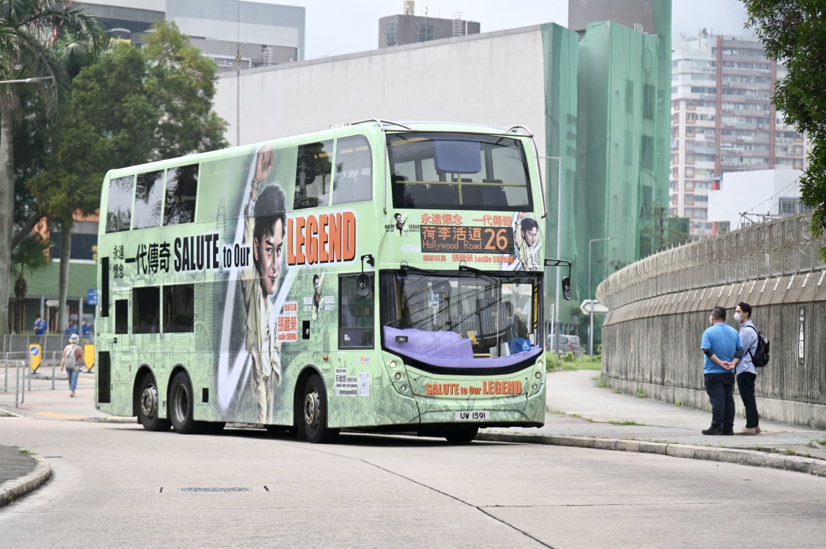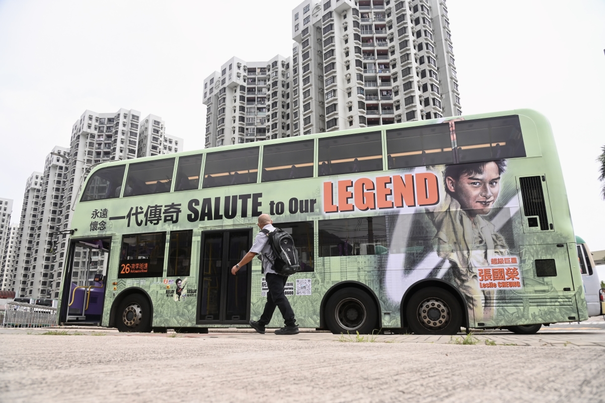 紀念張國榮的巴士於香港島行駛。(圖片:中新社)