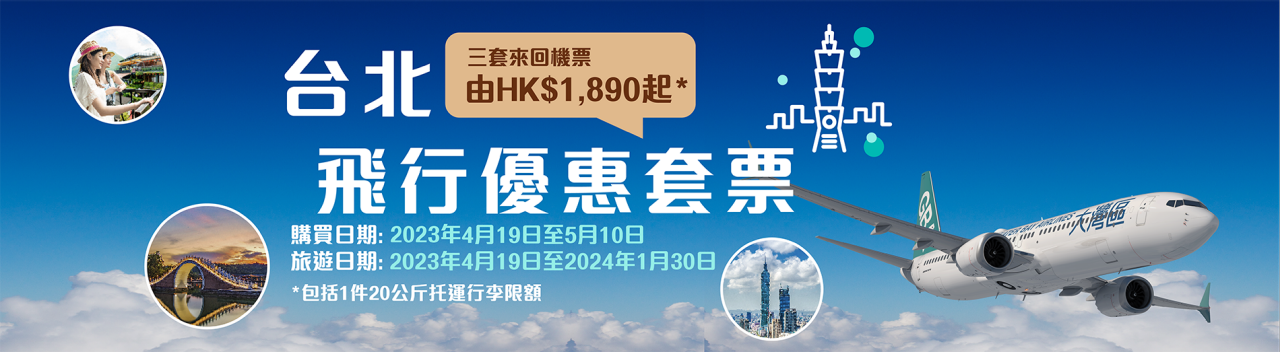 香港新聞網4月19日電 大灣區航空今日(19日)宣布推出香港至台北飛行優惠套票,由即日起至5月10日,只需1,890港元起(不包括相關稅項及燃油附加費),即可訂購三套香港與台北來回機票,票價包括每程20公斤託運行李限額。