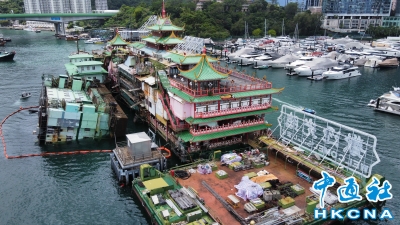 香港新聞網5月16日電 承載港人回憶的珍寶海鮮舫於南海水域,因遇上風浪致船身入水而傾覆,事件距今已有近一年。而珍寶海鮮舫的接駁碼頭、珍寶碼頭的招牌,也於昨日(15日)上午被拆卸,據悉工程歷時約2小時。 有南區街坊表示可惜,指過往不時到珍寶進餐,更感性慨歎:“真是往事只能回味,現在只能靠相片回憶。”2022年6月,有近半個世紀歷史的珍寶海鮮舫啟航離港,被運往柬埔寨,結果一去不返,在行駛至南海西沙群島附近水域時,因惡劣天氣而傾覆,船身全面入水翻轉。