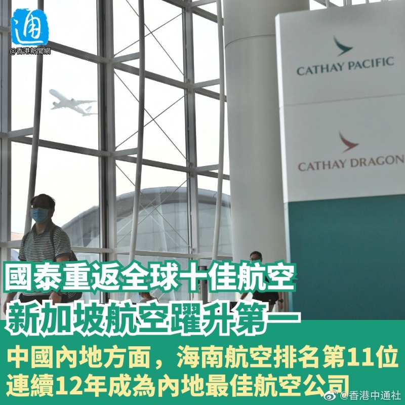 國泰重返全球十佳航空 新加坡航空躍升第一分享到: