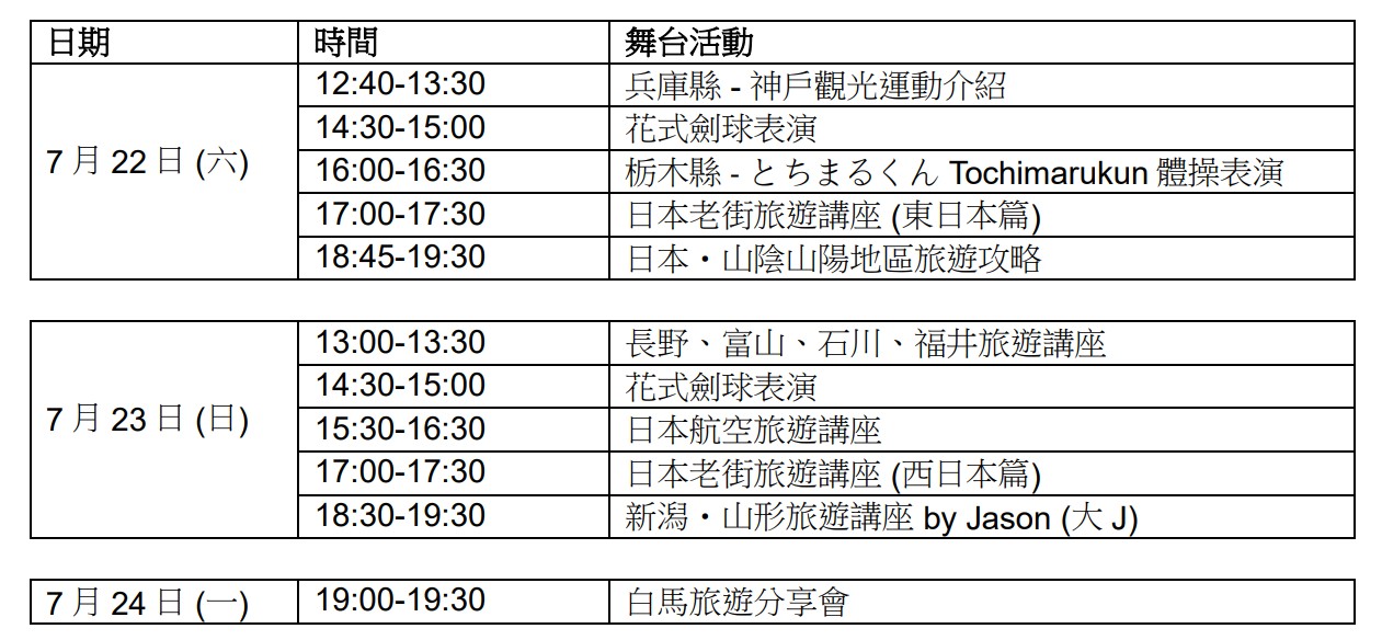 活動時間表。 投選你最想去的日本目的地 共創日本熱點地圖 JNTO整理出10個充滿日本傳統特色的舊街道及景區,為大家介紹多個隱藏於巷弄中的美食及體驗。大家可於現場投選最想前往的目的地,共創日本熱點地圖,一起探索日本歷史軌跡!