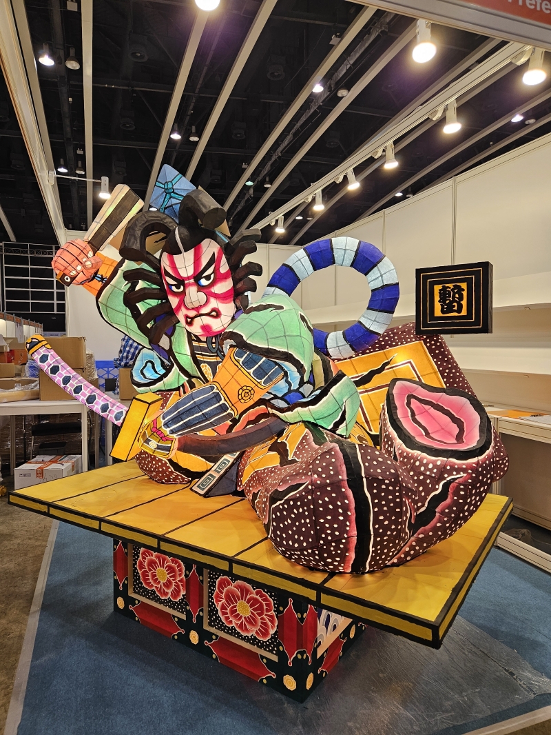 今年新參展的青森縣在會場設有約2米高的睡魔燈籠。(香港中通社記者 黃璇攝)