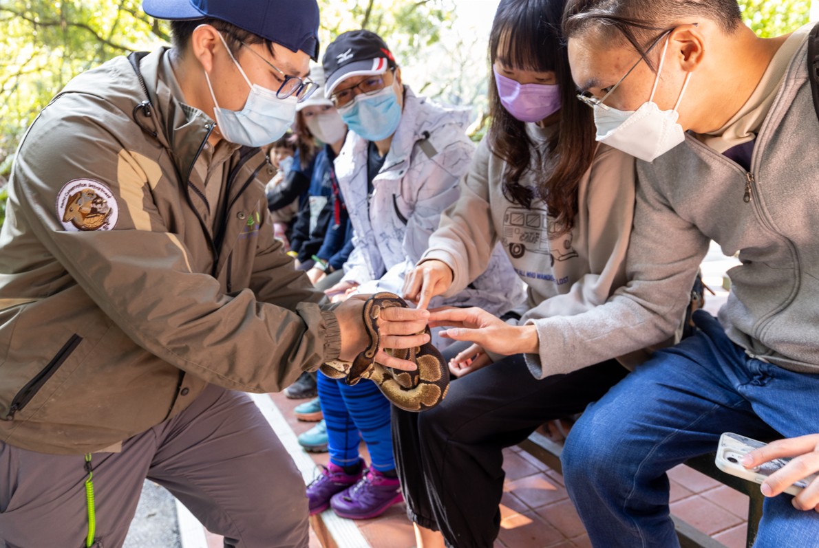居於嘉道理農場暨植物園的球蟒。 炎夏蛇出沒注意 踏入夏季,正是蛇類最活躍的季節。如果未有機會在野外接觸蛇類,市民可到訪嘉道理農場暨植物園即場報名參加“動物全接觸”,近距離認識居於園內的球蠎(Python regius)大使,同時了解其獨特之處及身世來由。今夏該園的球蠎大使包括最具份量的“Hope”女皇、成熟的男神“Hugo”、以及最年輕的“Tiny”小子,牠們將輪流登場與大家會面。這些無毒的球蠎原生於非洲,估計本為寵物蛇,因在家中逃脫或被野放而流落民居附近。牠們被警方捕獲後轉交該園,並定居於此。在“動物全接觸”活動中,參加者將能有機會一睹性情溫和的球蠎捲縮成球狀,並將頭部藏於中心的自我保護行為,此舉亦正是其名稱的由來。 除了球蠎外,公眾亦可選擇報名與竹節蟲及貓頭鷹等猛禽見面,同時了解更多關於各種動物保育以及非法野生動物貿易的資訊。