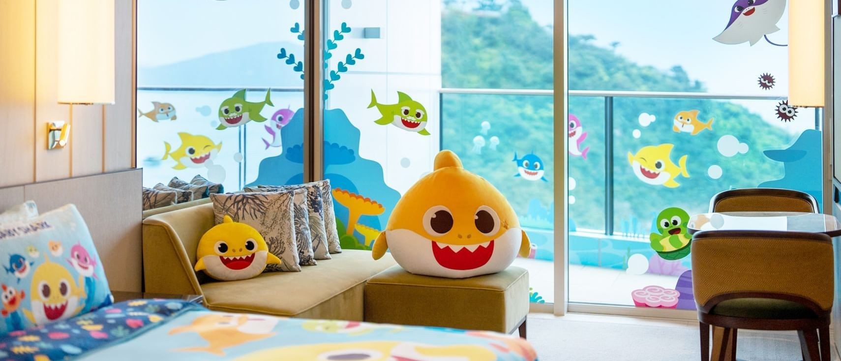 香港新聞網7月31日電 踏入仲夏,莘莘學子放暑假了,作為爸媽必定會構思暑期活動給子女,今年除了外出旅遊外,大家還可以繼續在香港Staycation,香港有多間酒店於今個盛夏與多個較受兒童喜愛的角色合作,呈獻主題客房酒店住宿禮遇及體驗,在房間中滿布這些角色,並推出與這些角色有關的工作坊、遊戲及相關禮品,以及充滿樂趣的兒童活動,讓小客人享受滿載趣味的仲夏假期,踏上有趣益智玩樂之旅。 為迎接仲夏,香港富麗敦海洋公園酒店與The Pinkfong Company由即日起至11月30日,以升級體驗為大家延續獨家呈獻Baby Shark主題客房酒店住宿體驗,讓大家投入充滿樂趣的海畔度假之旅,讓趣致可愛的Baby Shark主題限量版熊貓毛公仔為主題住宿揭開序幕!入住的小客人更可獲贈主題購物袋、主題保溫水瓶與主題可愛沙灘巾斗篷,以貼心禮遇讓大小客人盡情享受親子時光!嗜甜的大小客人亦可尊享主題雪糕杯、爆谷與汽水,為炎夏帶來一口清涼。住客更可於入住期間尊享無限次使用室內兒童玩樂區“探險家”等禮遇,讓孩子的美夢成真!同時,酒店到處亦遍布Baby Shark的蹤影,讓大家和小客人拍下 #pictureperfect的動人美照,留下珍貴回憶。