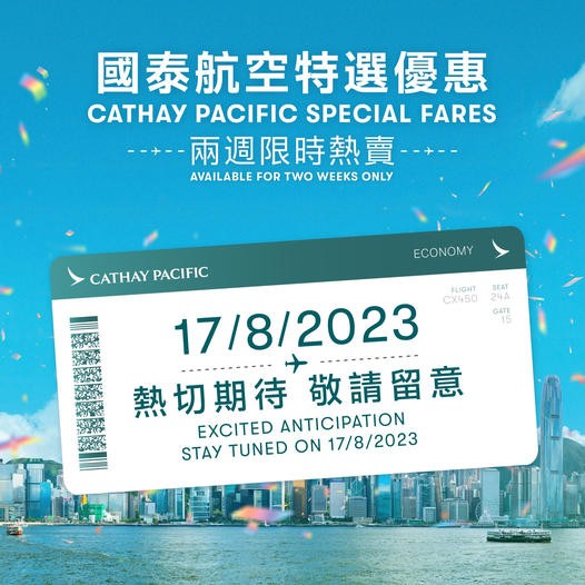 國泰周四推逾10萬個優惠機位 涉逾30個航點分享到: