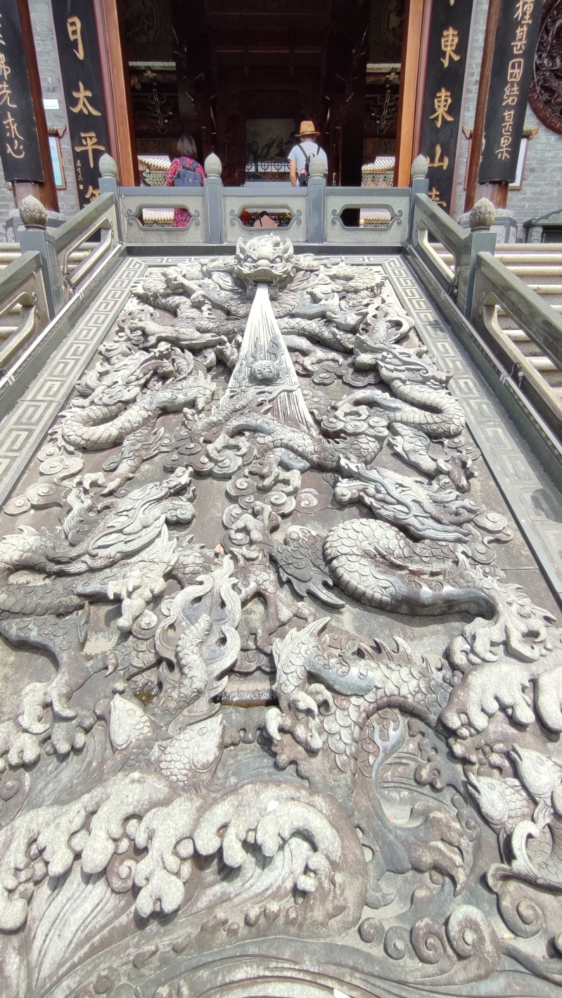 東山寺大殿前的石雕。