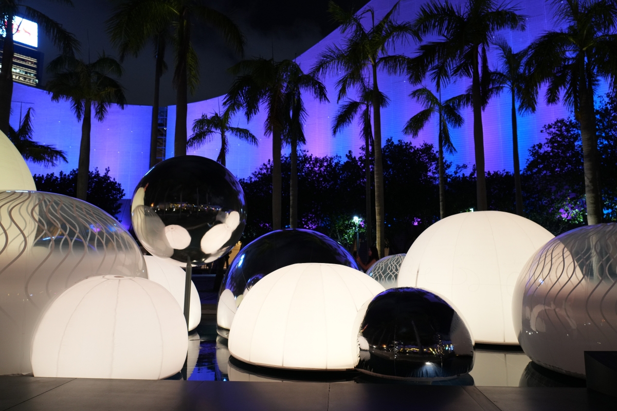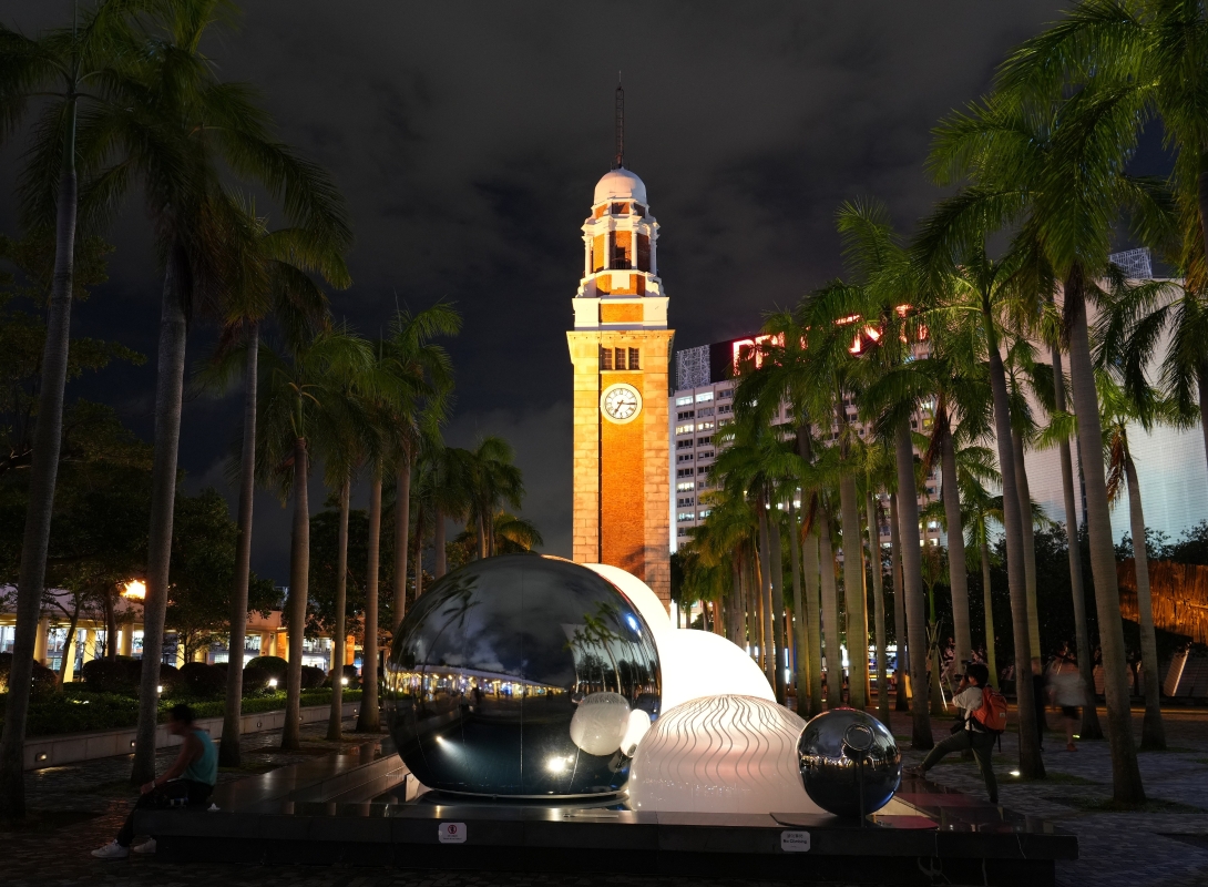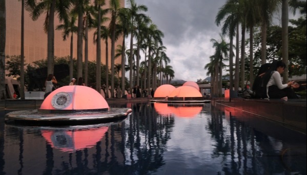 互動光影裝置“月亮製造機”。 “月亮製造機”由香港本地團隊一口設計工作室打造,四位成員包括張國麟、梅詩華、孫舒雯及黎雪慈,團隊在香港文化中心露天廣場水池設置互動光影裝置,透過塑像及感測科技營造各種光影效果,裝置顏色會因應附近人潮多寡而轉變。市民可從裝置欣賞到不同形態的月亮,並使用創作團隊特製的Instagram濾鏡拍照留念。