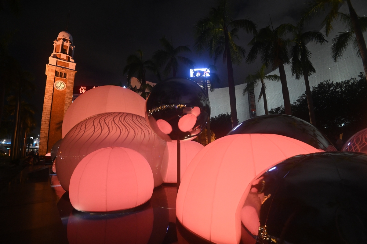 香港新聞網9月15日電 今日(9月15日)至10月8日,香港文化中心露天廣場水池展出互動光影裝置“月亮製造機”,為癸卯年中秋綵燈會揭開序幕。該裝置的亮燈時間為每日晚上6時30分至11時,中秋節(9月29日)當晚的亮燈時間將延長至凌晨12時。