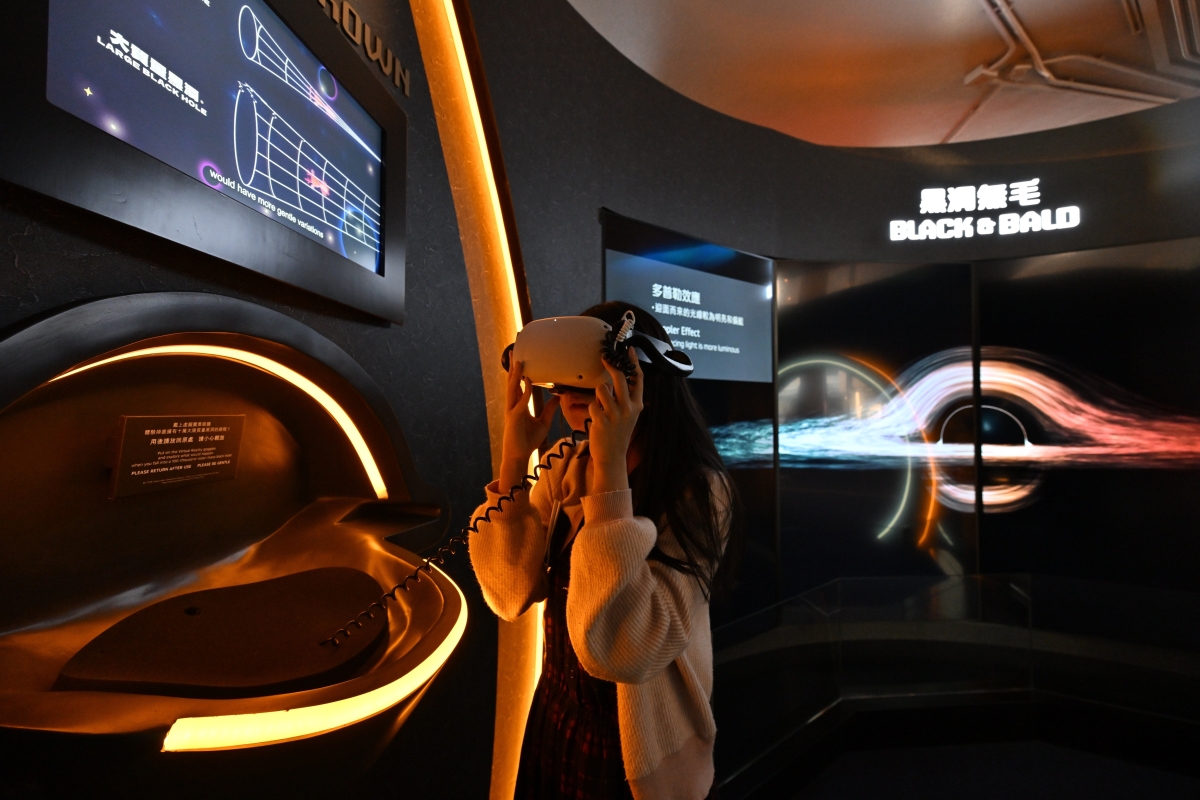 展覽設有虛擬實景眼鏡,模擬掉進黑洞的過程。