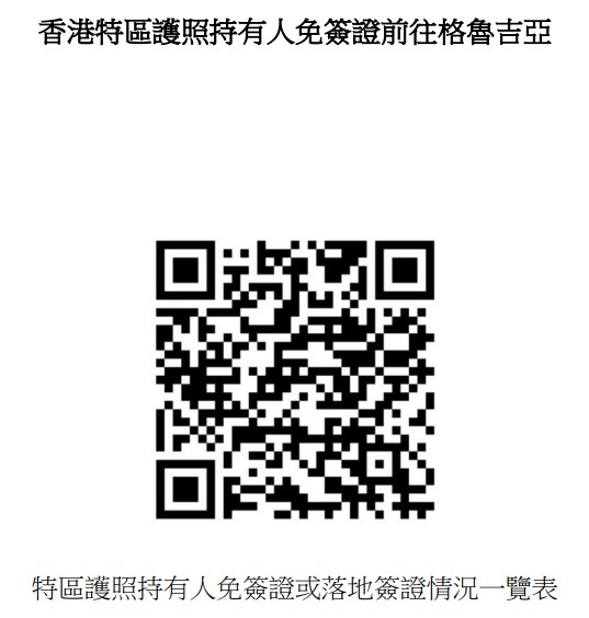 香港特區護照持有人可免簽證前往格魯吉亞旅遊,最長可逗留30天。 入境事務處發言人稱:“格魯吉亞是‘一帶一路’沿線國家。在‘一帶一路’倡議下,此免簽證安排為香港特區護照持有人帶來便利,並有助兩地加強旅遊、文化和經濟方面的聯繫。” 現時已有169個國家/地區給予香港特區護照持有人免簽證或落地簽證待遇。詳情可瀏覽以下網頁:www.immd.gov.hk/hkt/service/travel_document/visa_free_access.html或掃描以下二維碼。