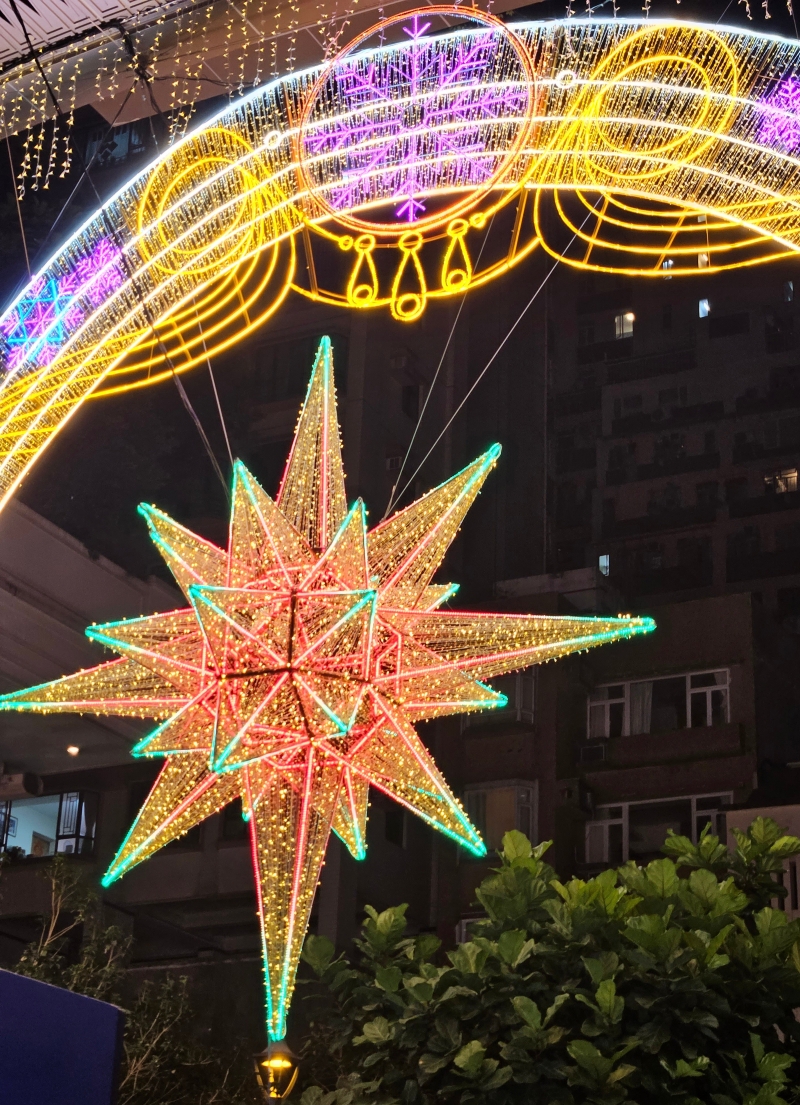 5米“巨型許願星”為晝夜帶來不一樣的浪漫景致。(香港中通社記者 黃璇攝)