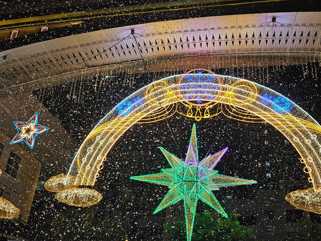 利東街每晚指定時段上演Let It Snow飄雪匯演。(香港中通社記者 黃璇攝) 聖誕怎能少得了飄雪?除了“巨型許願星”燈飾,由即日至2024年1月1日每個晚上的指定時段,利東街都會上演Let It Snow飄雪匯演,屆時利東街中庭將有漫天白皚皚的“雪花”於空中飛舞,加上“The Wishing Stars”閃爍璀璨的星星燈飾,讓大家猶如身處童話中的北歐小鎮,共度溫馨浪漫的節日夜。利東街會員更可參加活動換領聖誕美食。 【編輯:黃璇】