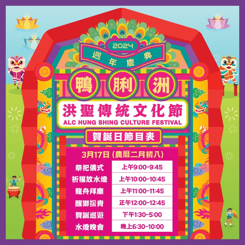香港新聞網3月15日電 每年農曆二月,位於香港島南區的鴨脷洲都會舉辦洪聖誕慶祝活動,包括神功戲、賀誕巡遊、正誕日儀式、水燈祈福等,以祈求風調雨順、居民平安,至今已逾百年歷史。今年的鴨脷洲年度盛事“洪聖傳統文化節”慶典將於本月17日(星期日)舉行,節目包括:接神儀式、放水燈祈福、龍舟“點睛”環節及傳統龍舟拜廟、醒獅採青、水燈晚會、賀誕巡遊、賀誕神功戲、正誕日(洪聖寶誕)祝壽儀式、頒旗典禮、及送神儀式等。