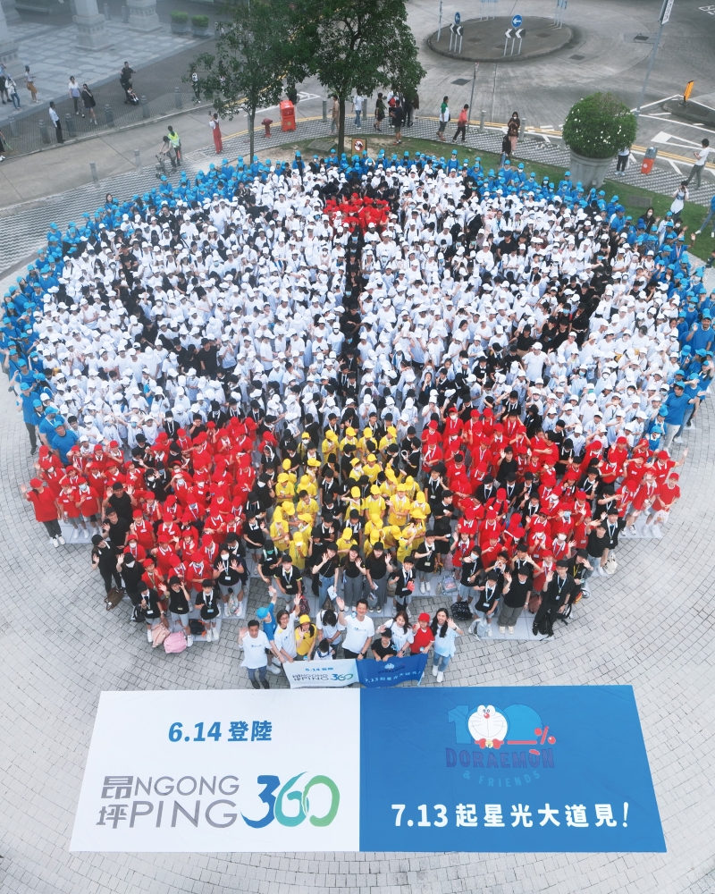 持來回纜車票的賓客在東涌纜車站售票處捐款港幣50元,可獲得任務卡參與“100%朋友召喚鈴”大冒險,並得到限定豆沙包主題頭箍和鈴鐺斜揹小袋。(圖片:昂坪360) 昂坪360董事總經理董沛銓說:“籌備這項快閃活動絕不容易,由於參與人數眾多,從安排同學們從學校到昂坪,到走到正確位置、成功拼出圖案,每個環節都充滿挑戰。感謝各間學校師生和鄰舍輔導會義工熱情參與,令快閃活動能夠順利舉行。” 昂坪360全力支持和贊助創意品牌AllRightsReserved(ARR)舉辦全球最大型多啦A夢展覽“100%多啦A夢&FRIENDS”巡迴特展(香港),並將率先於6月14日至9月1日舉行“100%多啦A夢&FRIENDS@昂坪360”,與多啦A夢一同以“100%朋友召喚鈴”的力量,集合一眾好友搶先於昂坪見面。 【編輯:黃璇】