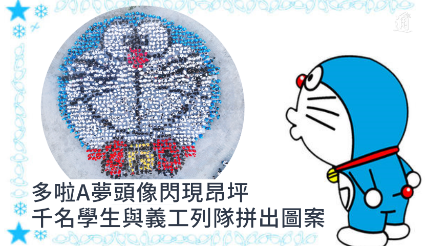 (有片)多啦A夢頭像閃現昂坪 千名學生與義工列隊合力拼出圖案分享到: