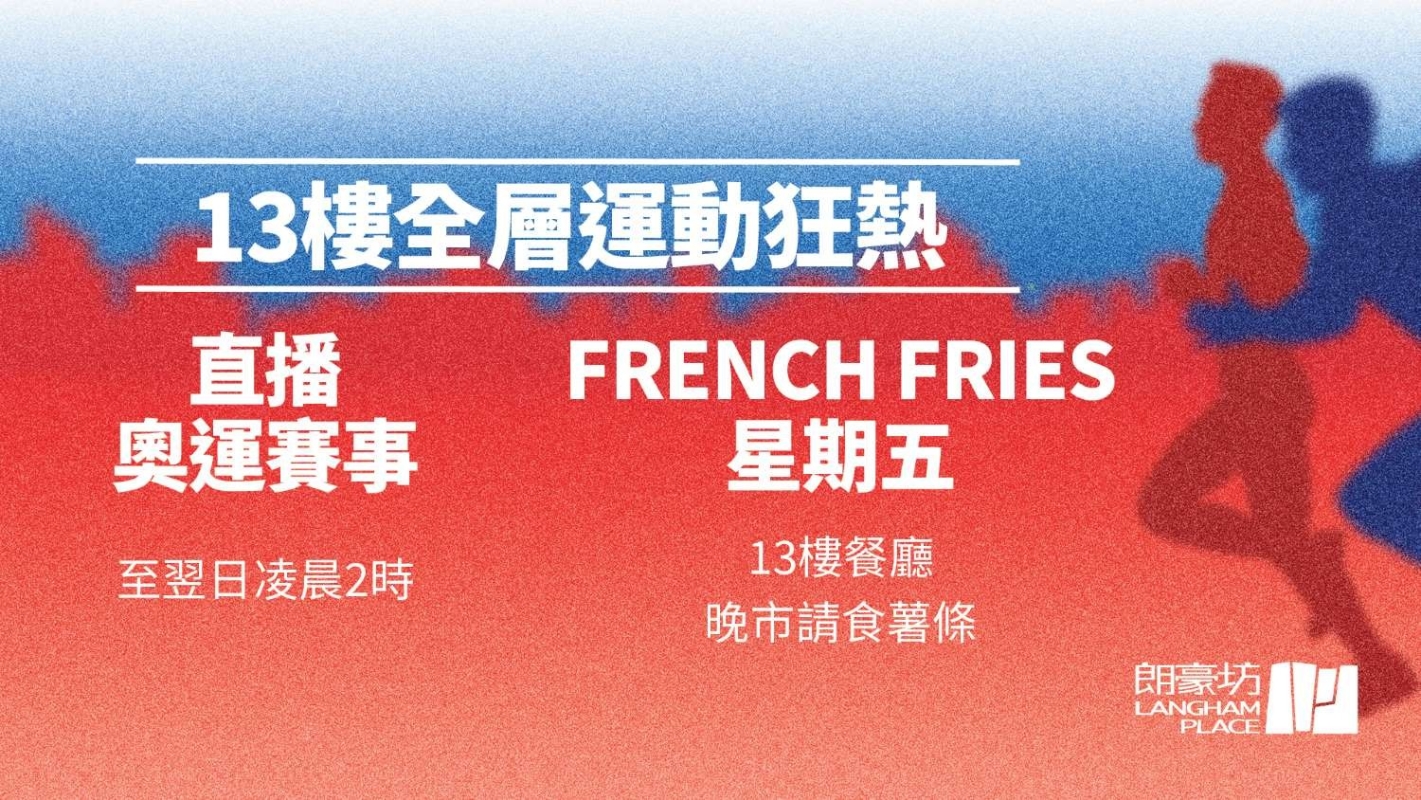香港新聞網7月22日電 巴黎奧運即將開鑼,為讓大家沉浸在運動熱潮中,朗豪坊將於4樓通天廣場以及於13樓加設高清大電視,全天候直播重點賽事,與全城一同為香港運動員集氣加油。同時,為了讓大家更貼身投入運動氛圍,朗豪坊將於7月25日至8月11日期間推出“敢‘動’夏日”三重消費賞,包括運動服飾消費“3X積分獎賞”,賺盡即可換領HK$100商場電子現金券、逢星期四75折搶購HK$100運動服飾電子現金券,以及聯乘場內指定餐廳推出“French Fries星期五”,於指定時段惠顧可享免費指定薯條一客。同期亦會繼續推出多種支付工具優惠以及早前推出“悠悠夏日消費賞”,消費滿額即享最多HK$2,500,回贈讓顧客沉浸運動熱潮及享受夏日購物樂趣。