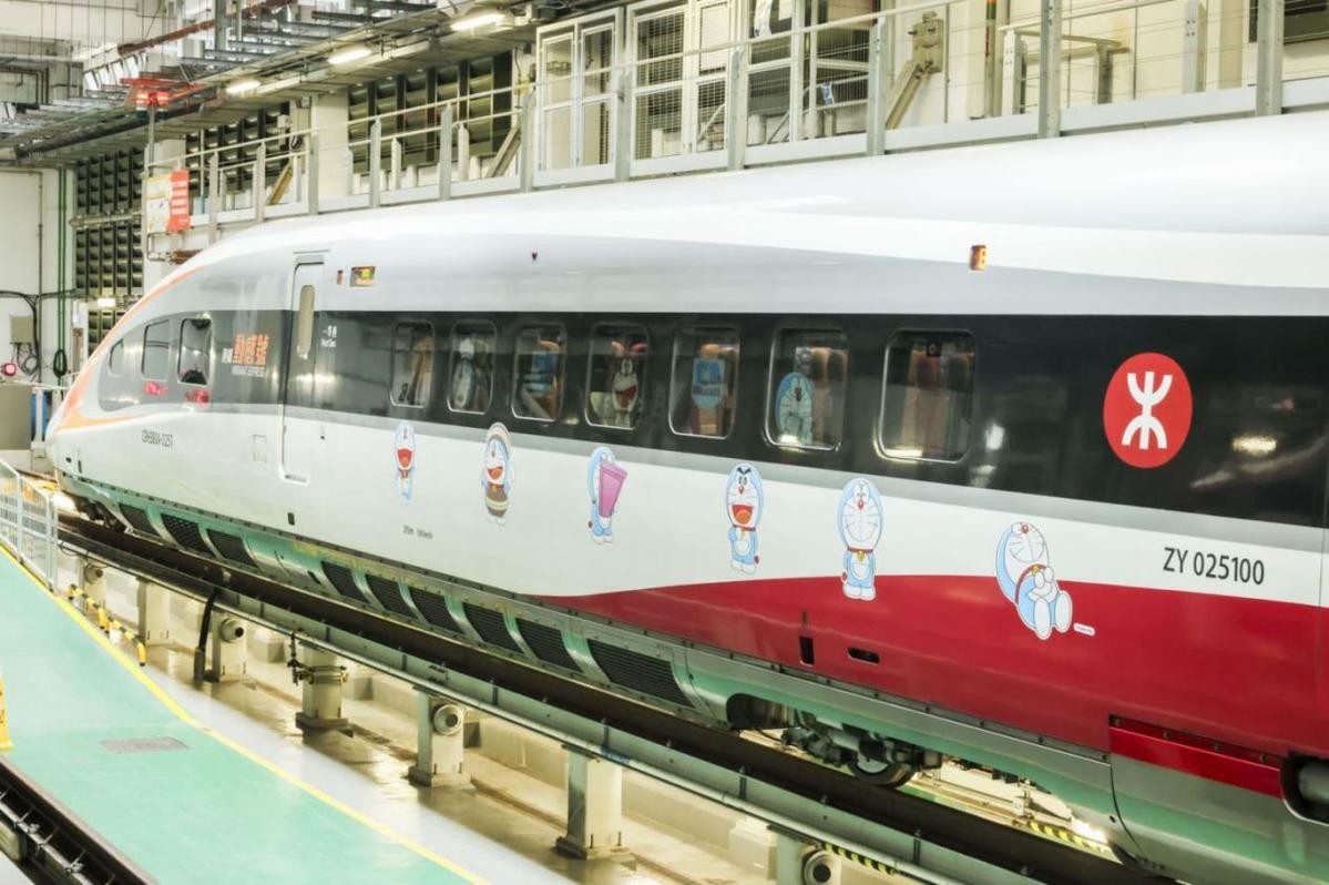 (主辦方供圖) 高鐵多啦A夢主題列車壓軸登場 由港鐵動感號變身而成的高鐵《100% 多啦A夢 & FRIENDS》主題列車,是繼輕鐵、東鐵綫以及機場快綫以後的壓軸重頭戲。作為首列跨境行走的《100% 多啦A夢 & FRIENDS》主題列車,滿載著不少人的童年回憶和歡樂,高鐵希望為香港巿民帶來驚喜、陪伴他們出發的旅程,同時亦透過主題列車,迎接內地的旅客來港參與多啦A夢的盛事。
