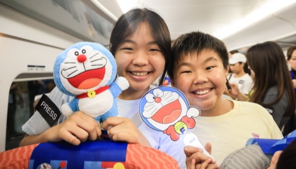 香港新聞網7月29日電 輕鐵、東鐵綫以及機場快綫多啦A夢主題列車自推出以來受到市民和乘客歡迎,港鐵公司與《100% 多啦A夢 & FRIENDS》巡迴特展(香港)的主辦單位AllRightsReserved乘勢推出首列粵港跨境高鐵《100% 多啦A夢 & FRIENDS》主題列車,由 即日起接載旅客穿梭香港、深圳和廣州!主題列車車廂內外遍佈50多款多啦A夢造型裝飾,將多啦A夢代表的夢想和勇氣,以及歡樂伴隨着高鐵由香港帶到深圳與廣州。3款多啦A夢電影版1:1角色造型雕塑亦已到達高鐵香港西九龍站,連同站內多款主題裝飾,多啦A夢將與你結伴於盛夏搭乘高鐵出發,與各方好友享受快捷可靠、輕鬆方便的高鐵旅程。