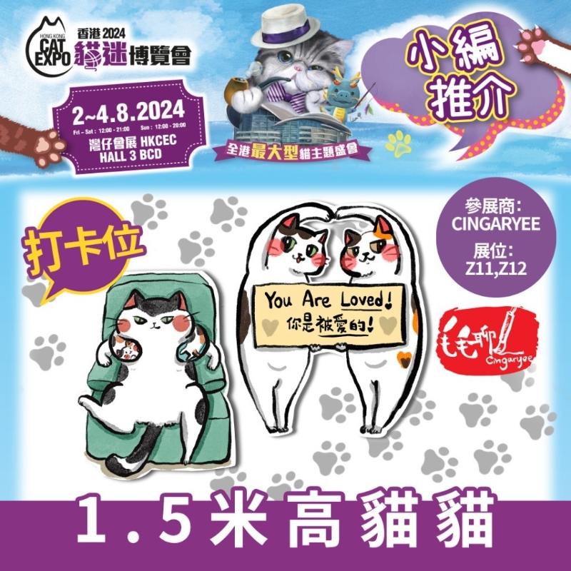 香港貓迷博覽會2024 日期:8月2至4日 時間: 8月2至3日(12時至21時) 8月4日(12時至20時) 地點:灣仔博覽道1號香港會議展覽中心展覽廳3BCD 票價:HK$30 【編輯:黃璇】