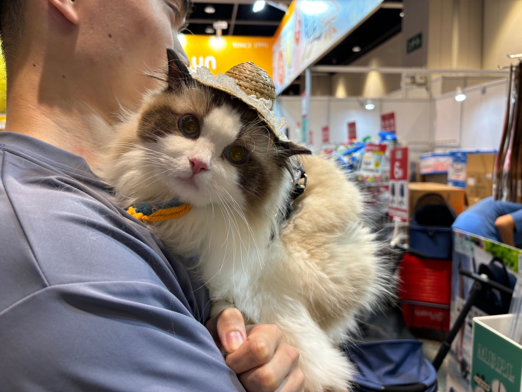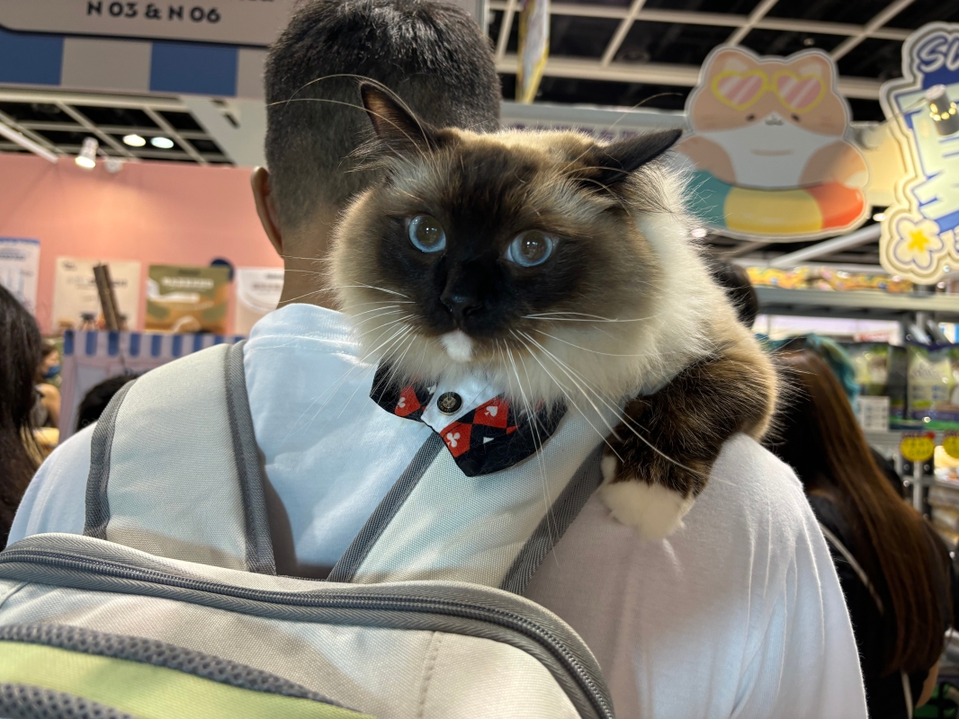 市民只需出示貓隻有效針卡,便可攜貓入場。(香港中通社記者 黃璇攝) 展覽集團主席王學譜表示,香港寵物產業(貓)每年市值逾22億,包括糧食、醫療、保健、保險、服務、玩具等不同種別,今年博覽增設一個展館,更首度有來自中國內地、中國澳門,日本、韓國、馬來西亞等地區參與。展覽集團在今年6月進行了全香港住戶養貓調查報告顯示,6成受訪者家養2隻貓,12.4%養4隻貓,養貓每月支出較去年急升26%,每個月花費1889元。 不少市民攜帶愛貓到場購物。第二年來博覽會購物的廖小姐指,今年購物較去年闊綽,不設消費上限,已花費近千元為貓咪購入零食、罐頭、玩具等。有市民形容貓迷氣氛熱鬧,許多參展商都推出不同優惠,較網購更加優惠,表示即使需購門票入場,仍能在場內獲得“著數”。(完) 【編輯:黃璇】