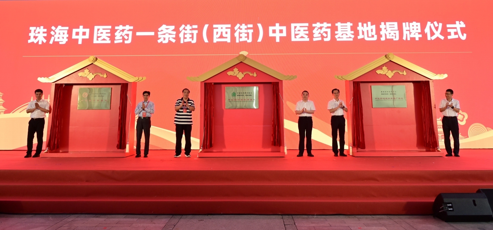 開園儀式上午10時舉行,由香洲區區長劉齊英主持,珠海市市長黃志豪、珠海市人大常委會主任潘江、廣州中醫藥大學黨委書記陳文鋒、香港珠海社團總會會長鄺美雲、珠海市委副書記李彬、珠海市委常委兼香洲區委書記李偉輝、珠海市副市長李翀和黃振球、珠海市政協副主任張鬆、廣東省中醫院副院長郭建文、華發集團總經理李光寧、澳門中醫藥學會會長石崇榮等眾多嘉賓出席。 儀式上,黃志豪向廣州中醫藥大學頒授“珠海中醫藥傳承與創新發展指導單位”;潘江向廣東省中醫院頒授“珠海中醫藥一條街戰略合作單位”。中國醫藥教育協會、澳門中醫藥學會、珠海市中醫藥學會在此掛牌設立的“中醫藥科普教育基地”、“中醫藥研學基地”和“中醫藥適宜技術推廣基地”同場揭牌,推動珠海中醫藥產學研用一體化高質量發展。 珠海市副市長黃振球在致辭中對西街正式開園表達祝賀。他表示,中醫藥一條街目標打造具有“品質高、價格優、一站式、規模化”特點,集“醫、藥、妝、食、動、文”於一體的中醫藥文化傳承發展和健康消費場景,持續豐富高質量中醫藥文化和消費供給。西街的啟用將進一步推動珠海做大做強特色中醫藥大健康服務鏈,增強珠海中醫藥文化傳播影響力。 澳門中醫藥學會會長石崇榮表示,中醫藥是澳門經濟適度多元發展的重點方向,也是橫琴粵澳深度合作區重點扶持的核心產業。澳門中醫藥學會在西街設立“中醫藥研學基地”,是珠澳兩地中醫藥合作的新成果也是新的起點。希望藉助這一平台,進一步加強澳珠兩地交流合作,促進中醫藥各產業要素集聚,共同推動中醫藥事業的創新發展。
