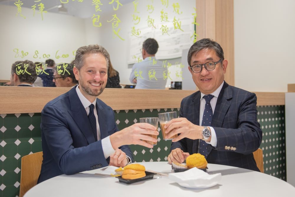 程鼎一(右)與Noah Horowitz在茶餐廳内享用美食。(圖源:香港旅發局) 旅發局總幹事程鼎一表示:“我們非常榮幸能成為首間與巴塞爾藝術展開全球策略合作的旅遊推廣機構。‘茶餐廳’的推出不僅展示了香港獨特的飲食文化,也希望能吸引更多藝術愛好者來港親身體驗我們的文化。” 巴塞爾藝術展香港展會總監樂思洋則補充道:“這次展覽不僅展示了香港的多元飲食文化,還結合了深厚的歷史底蘊。我們期待更多藝術愛好者在明年3月來訪香港,體驗這座城市不斷擴展的文化景觀。”