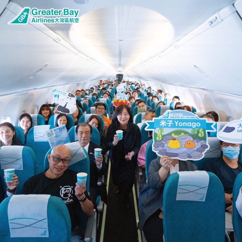 大灣區航空行政總裁吳秀蘭(中)與乘坐米子首航班機的旅客於機上合影。(大灣區航空圖片) 新航點陸續有來,大灣區航空接下來的11月16日、12月7日還會分別推出德島、仙台直航。大灣區航空行政總裁吳秀蘭表示,新增的航線不僅為港人提供了更多的日本旅遊選擇,亦希望能吸引鳥取縣遊客來港。她指出,隨著香港的旅遊體驗不斷提升,旅客們應該重新考慮來港的計劃。