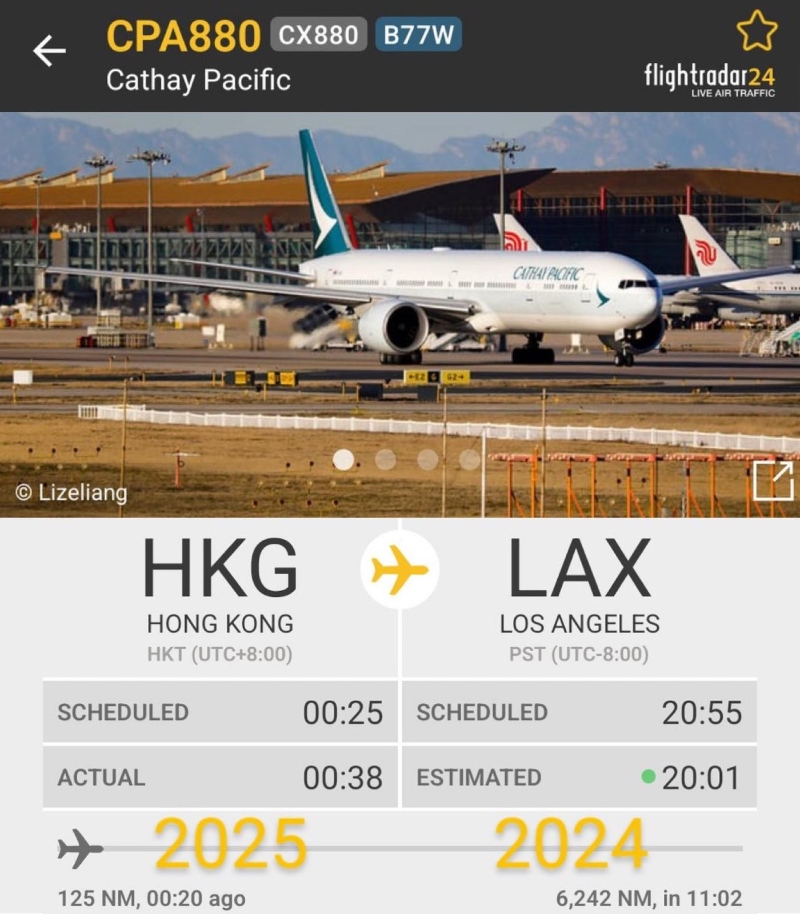 最特別的跨年經歷,無疑是“一天跨兩次年”的奇妙旅程! 近日,一趟“香港→洛杉磯”的航班在網上引起關注。國泰航空CX 880航班於2025年1月1日凌晨從香港國際機場(HKG)起飛,正當乘客們在香港慶祝新年後,飛機穿越了國際換日線,時間瞬間倒退回2024年12月31日。當航班抵達洛杉磯國際機場(LAX)時,當地時間仍是12月31日晚上8時30分,這意味著乘客們又重新體驗了一次跨年夜。