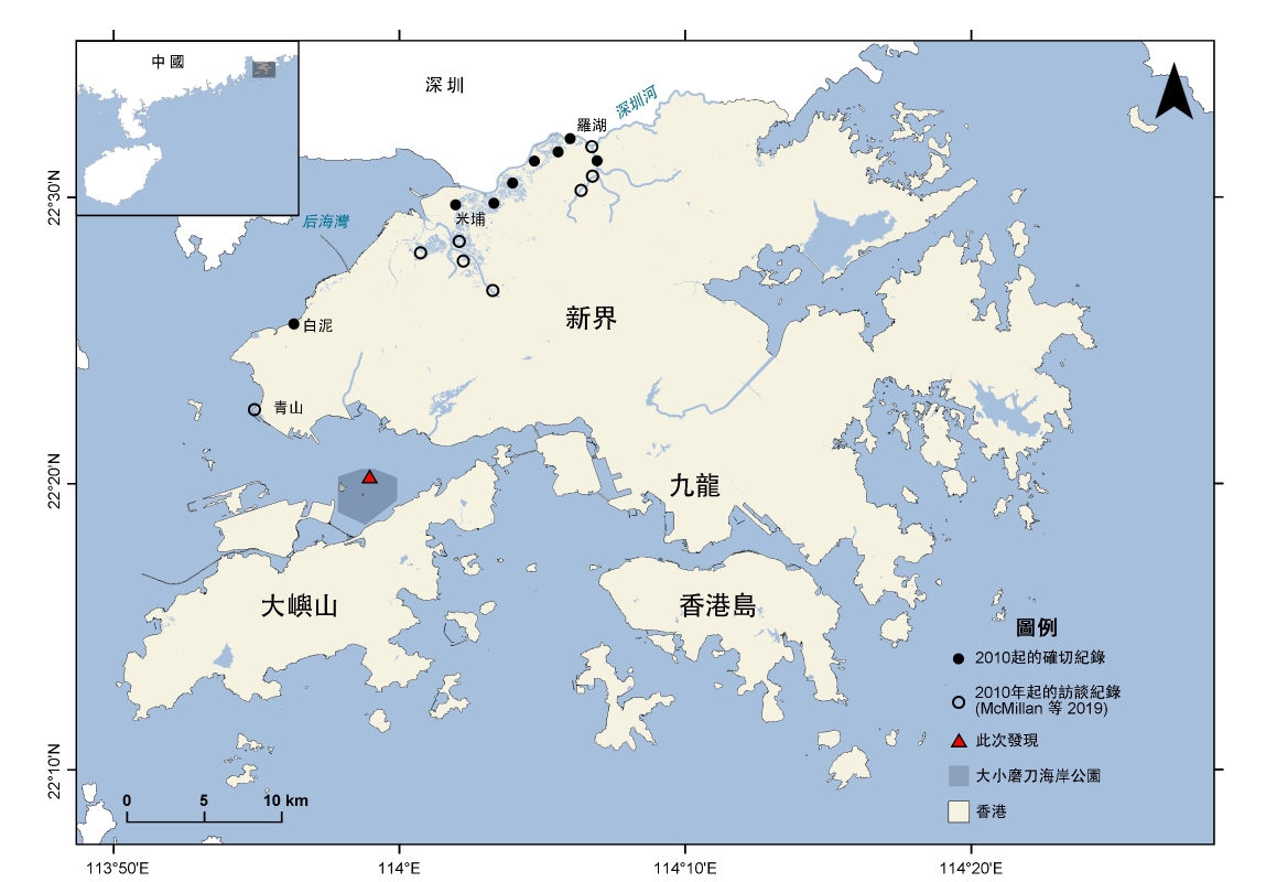 (香港新聞網製圖) 近年來,隨著嘉道理農場暨植物園的調查,歐亞水獺的存在似乎重新出現。自2020年以來,調查顯示水獺在新界西部及北部的魚塘濕地和海岸地帶活動,甚至深入市區的人工河道。近期,研究團隊在大嶼山的大小磨刀海岸公園發現了一堆疑似水獺糞便,經過基因鑒定確認屬於歐亞水獺,這一發現為水獺在香港的分布範圍提供了重要證據。