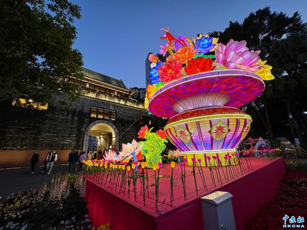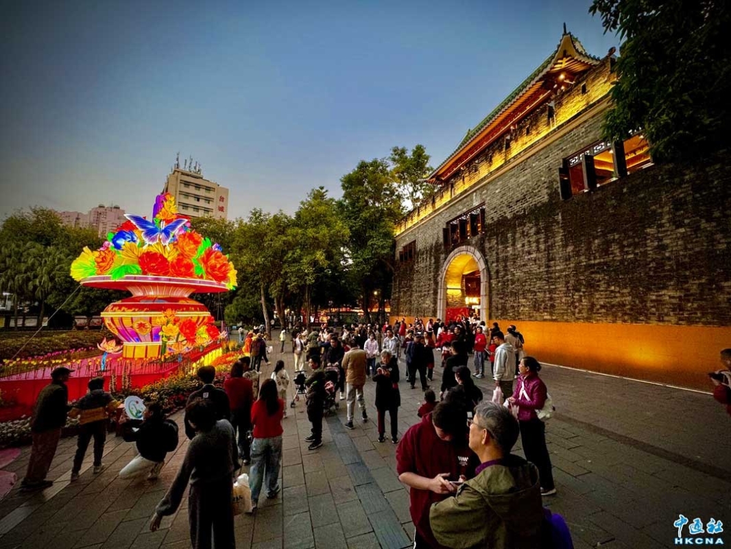 香港新聞網2月1日電 (記者徐文峰)新春期間,中國廣東省廣州年味濃鬱,越秀公園內五羊石雕、明城牆張燈結綵,到處洋溢著新年的喜慶。五彩幻變的廣州塔,美得讓人心醉。