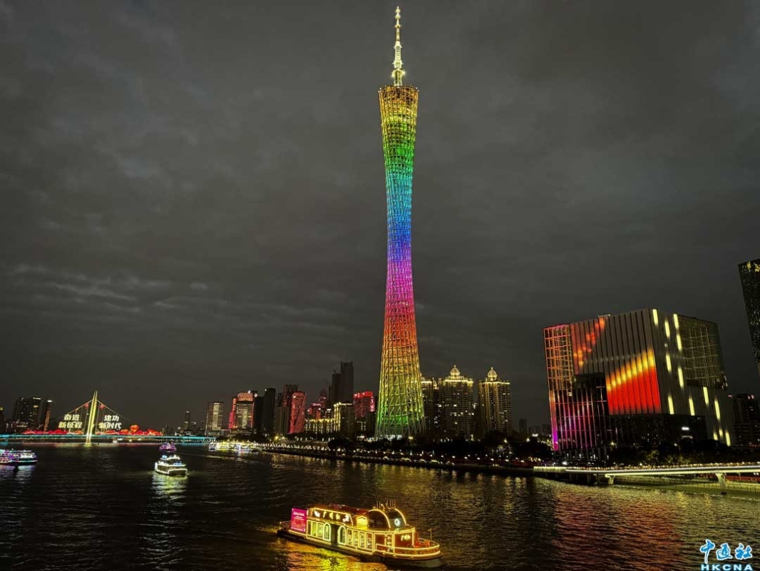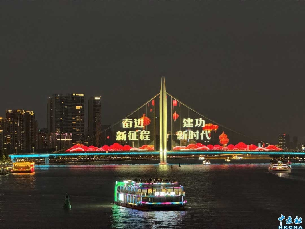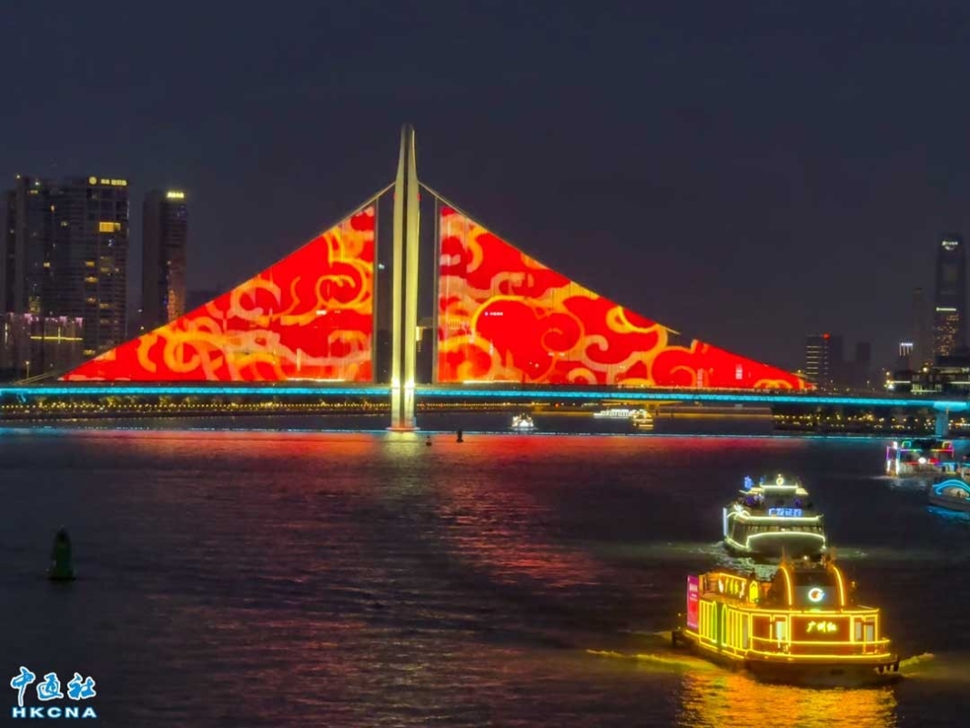 廣州大橋打出色彩繽紛的圖案