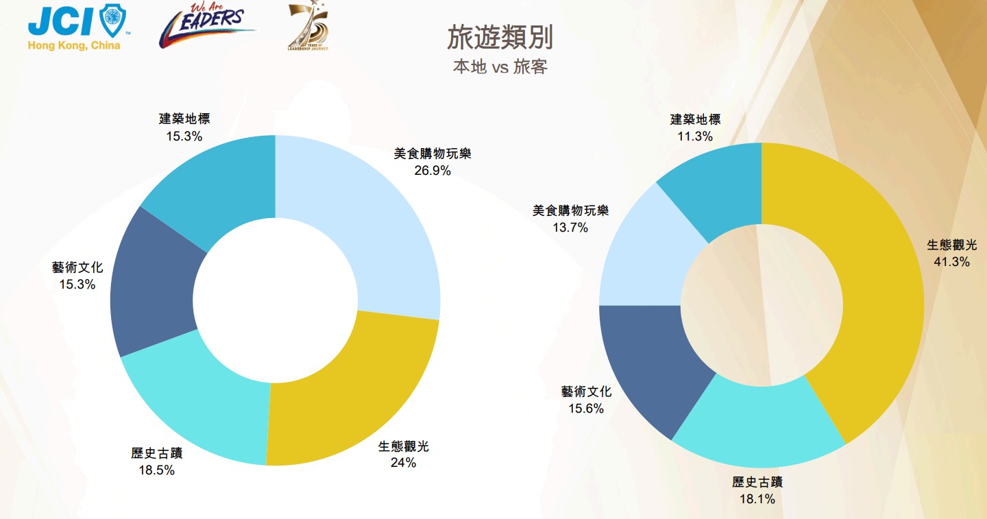 根據調查結果,近半數海外受訪者(41.3%)選擇生態觀光作為首選旅遊類別,其次是歷史古蹟(18.1%)及藝術文化(15.6%)。相對而言,港人則更偏向美食購物玩樂(26.9%),顯示出訪港旅客的旅遊取向正在向生態旅遊轉變。