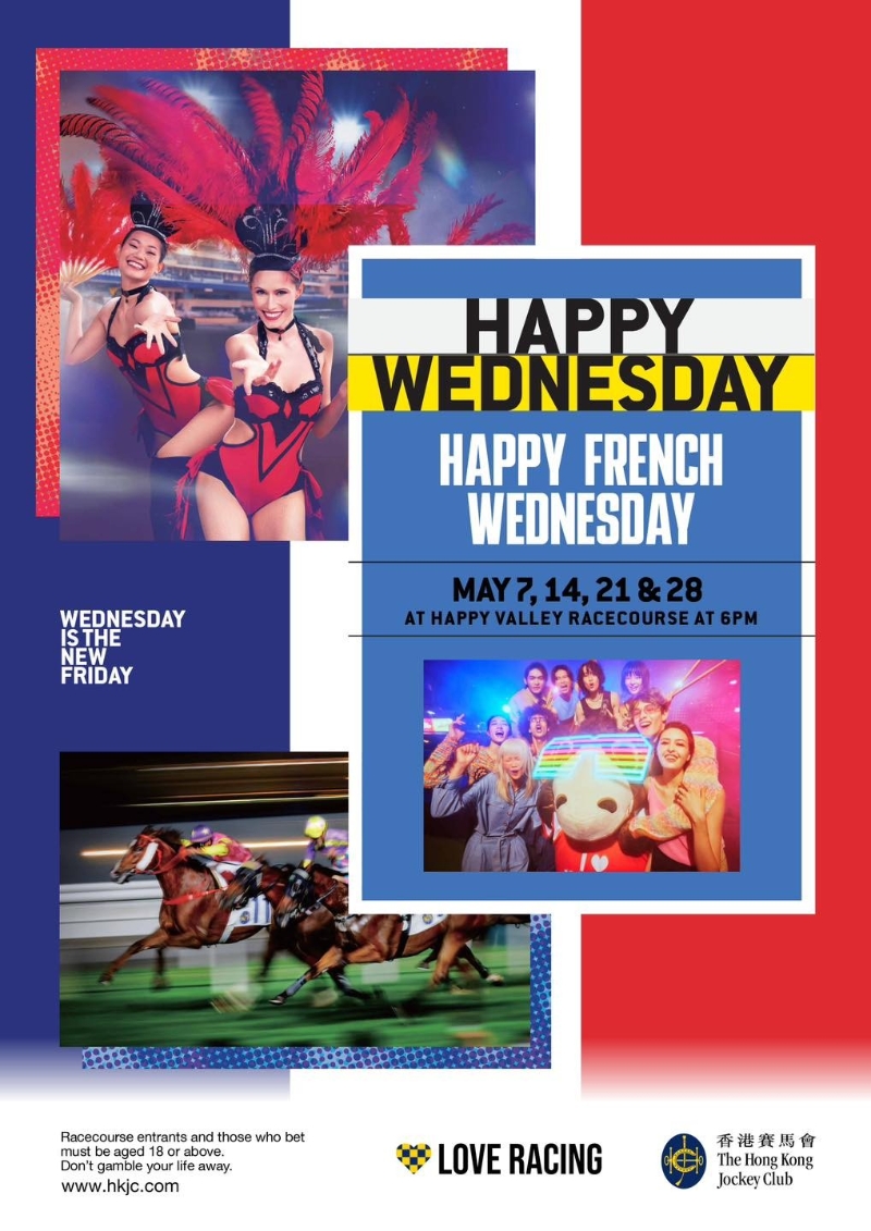 Wednesday is the New Friday!誠邀全城愛熱鬧、愛刺激的市民及旅客,穿上時尚法式穿搭,於5月14、21及28日投入法國五月狂歡盛宴,親身體驗法式生活的浪漫魅力,讓每個週三賽馬夜都成為值得期待的盛會,盡情享受週中歡樂時光。