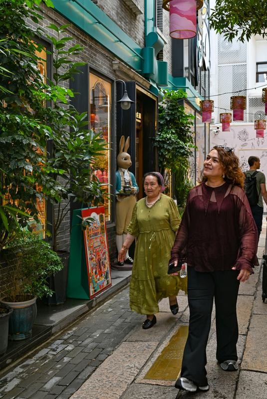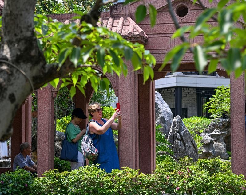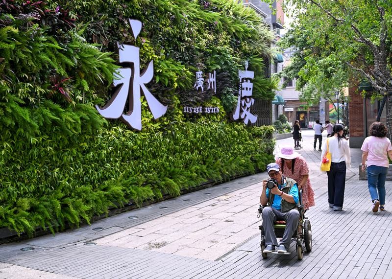 •   一名外國遊客在永慶坊游覽(5月13日攝)。 廣州永慶坊位於荔灣區恩寧路,保存著廣州最為完整的騎樓建築群,是一條有著千年曆史的文化街區。2016年,永慶坊率先成為全國“微改造”試點街區,摒棄了大拆大建的做法,通過“綉花功夫”延續歷史格局,活化利用舊建築空間,既留存嶺南建築風貌,又創新性融入現代生活功能,實現傳統肌理保護與人居環境提升的有機統一。 如今,永慶坊以非遺文化為核心,打造了廣州首個非遺主題街區,通過業態升級煥發傳統街巷生機。市民與遊客時常駐足於此,感受接地氣的老廣州味道,在城市變遷中留住鄉愁。圖片來源:新華社