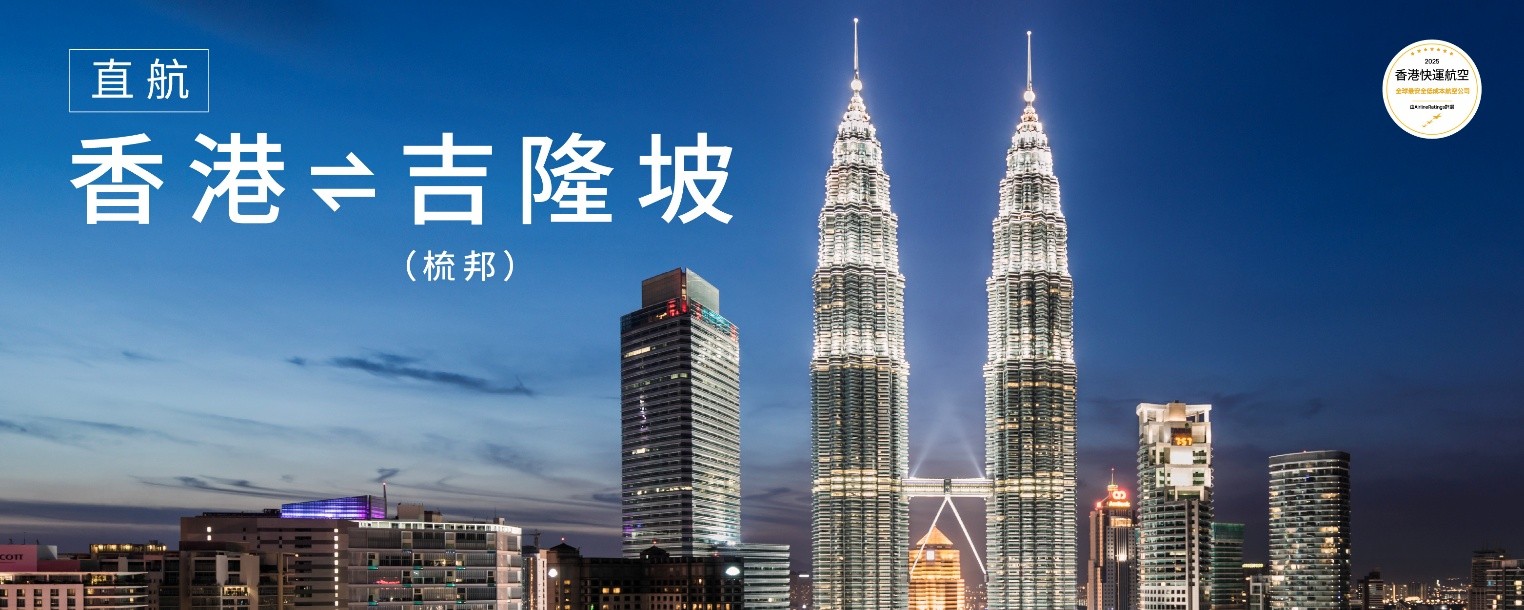 香港新聞網6月11日電 香港快運航空宣布將於2025年8月1日開通來往香港與吉隆坡(梳邦)的航線,每日一班直達蘇丹阿都阿兹沙機場(SZB)。這個繼檳城後香港快運在馬來西亞的第二個航點,絕對是旅客去首都吉隆坡的新選擇。旅客出關後最快30分鐘即可快捷抵達吉隆坡市中心,讓您輕鬆玩轉雙子星塔、武吉免登等熱門景點,更能深入體驗在地人才知道的馬拉魅力。