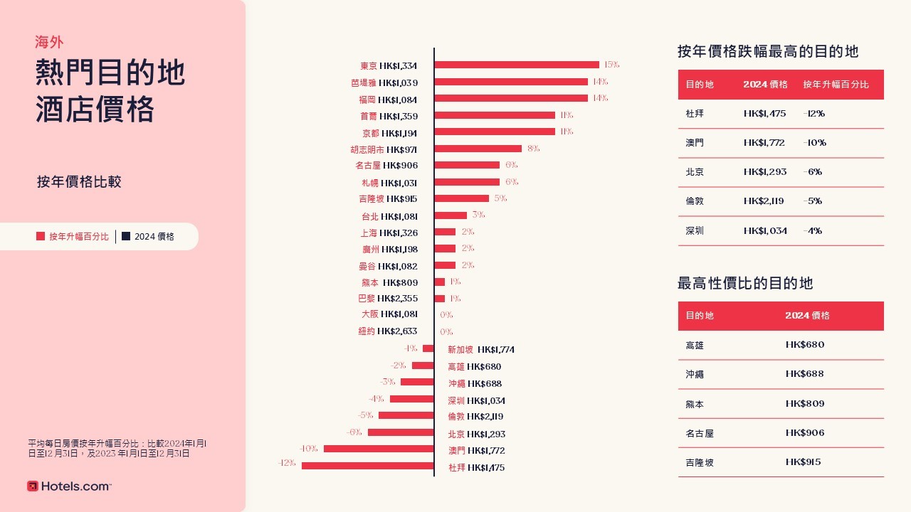 熱門目的地酒店按年價格比較。(數據來源:Hotel.com)