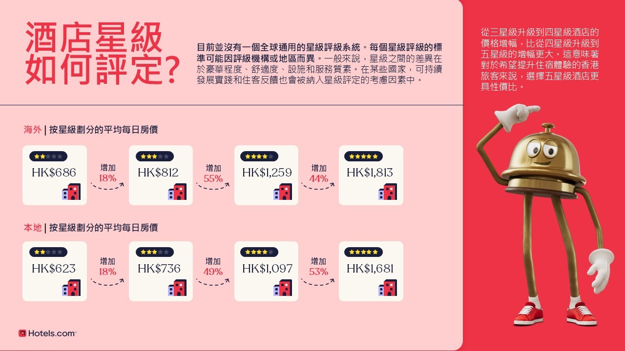 五星級酒店的性價比吸引力日益上升。(數據來源:Hotel.com) 報告進一步強調,五星級酒店的性價比吸引力日益上升。旅客從四星級升級至五星級酒店僅需多付44%的房價,相較之下,從三星級升級至四星級則需多付55%。這使得五星級酒店成為尋求高品質住宿的旅客的理想選擇,提供了更具價值的住宿體驗。