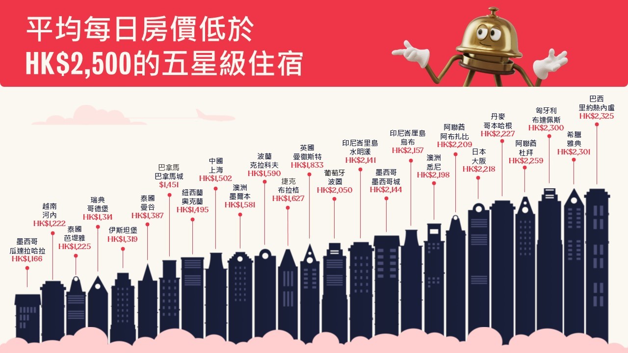 平均每日房價低於2500港元的五星級住宿。(數據來源:Hotel.com) 同時,報告也揭示,豪華住宿不再意味著高昂的費用。河內(1222元)、芭堤雅(1225元)和伊斯坦堡(1319元)等地的五星級酒店價格僅為東京的三分之一(3986元),讓旅客能以相對實惠的價格享受奢華體驗。尤其是迪拜和墨爾本的五星級酒店,平均每日房價約2500元,為渴望高端住宿的旅客提供了更多選擇。 Hotels.com全球公共關係副總裁Melanie Fish表示:“在當前的經濟環境下,酒店價格指數為注重性價比的旅客提供了寶貴的參考,幫助他們了解如何在全球各大旅遊目的地中獲得最佳的住宿體驗。”她指出,這份報告如同一份旅行秘笈,不僅揭示了哪些地方可以盡情揮霍,還提供了如何節省開支的實用建議。 總結來看,2025年酒店價格指數為旅客提供了有效的參考依據,幫助他們在全球各大旅遊目的地中做出明智的住宿決策。無論是追求奢華體驗還是尋求高性價比,這份報告都可成為港人計劃旅行的資源。(完) 【編輯:黃璇】