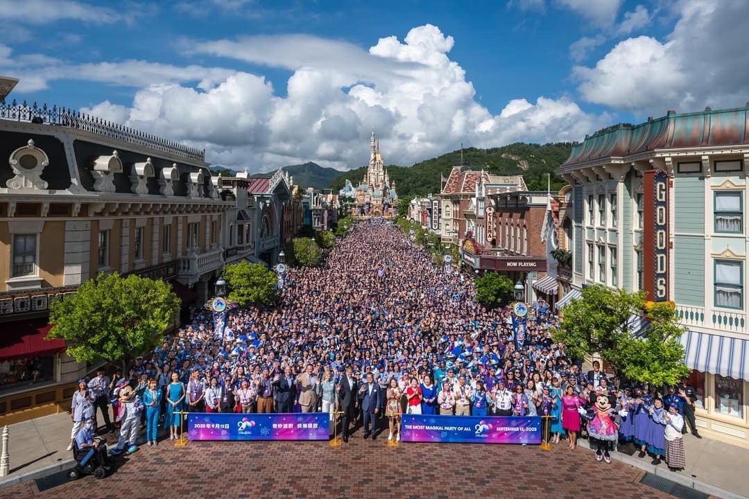 香港迪士尼樂園度假區演藝人員20周年大合照。(圖源:Disney Magical Kingdom Blog) 戴明哲表示,迪士尼一直為入場賓客提供難忘體驗,是帶領香港旅遊業發展的主要動力。20周年是令人振奮的新篇章,未來會持續擴展樂園,包括擴建中的皮克斯及漫威主題體驗,亦會興建一個劇場。 香港特區政府財政司司長陳茂波表示,香港迪士尼在過去20年已成為具標誌性的世界級目的地,吸引數以百萬計的旅客。迪士尼不僅是主題樂園,更是香港旅遊業重要一環,為本地經濟作出重要貢獻。 大批賓客在未開園已等候入場,入園時獲贈20周年紀念徽章。有來自日本的母女,為慶祝香港迪士尼20周年而來港三天,預計此行消費約5萬港元。樂園亦推出全新紀念品,包括珍藏卡和毛絨玩偶等,及新開幕的主題餐廳,以航海故事為靈感,專門提供清真食品。(完) 【編輯:黃璇】