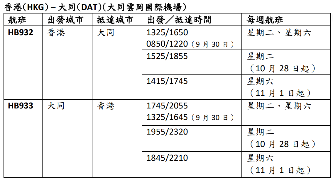 大灣區航空本周起推出山西大同定期航班分享到: