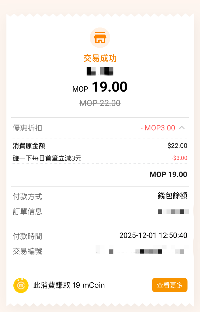 基於“碰一下”技術,MPay同樣實現了“開通即用、一碰即付”的便捷體驗。用戶在結帳時無需手忙腳亂地尋找付款碼,也無需中斷手機當前操作,支付體驗較傳統的“掃一掃”更加自然流暢。值得一提的是,該功能需在手機解鎖狀態下才能完成交易。若手機處於熄屏或未解鎖狀態,即使貼近設備也不會觸發支付,確保用戶支付過程安全可靠。為加速在澳普及,即日起至12月底,澳門通與支付寶推出專項優惠:用戶每日首筆使用MPay“碰一下”支付可立減3澳門元,且當月天天有優惠,覆蓋日常購物、餐飲等高頻消費場景。