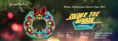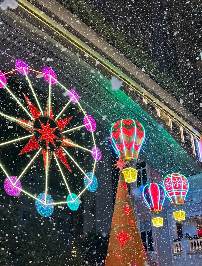 灣仔利東街12月逢周五、六及重要日子舉辦飄雪匯演。(香港中通社記者 黃璇攝) 11月下旬至2026年1月1日,灣仔利東街化身“Luminous Carnival”,讓你猶如置身歐洲嘉年華。200米林蔭步道上懸掛巨型聖誕鈴及聖誕球燈飾,入夜閃爍動人。中庭設有八米高LED幻彩聖誕樹、7.5米空中摩天輪、飛天熱氣球、旋轉木馬。每日下午5時30分起演聖誕燈光音樂匯演。12月逢周五、六及重要節日舉辦“Let It Snow!”飄雪匯演,營造白色聖誕。 太古廣場聖誕中央車站