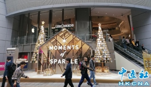 中環皇后像廣場花園北面設有20米高聖誕樹。(香港中通社記者 黃璇攝)