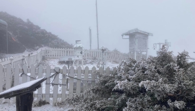 香港新聞網3月6日電 根據台灣“中央氣象署”觀測,今天(6日)凌晨玉山風口測站出現攝氏零下3.7度。“氣象署”在“報天氣-中央氣象署”臉書專頁分享玉山氣象站清晨景象、仍有積雪約5公分,而山頭則覆蓋著一些白雪。