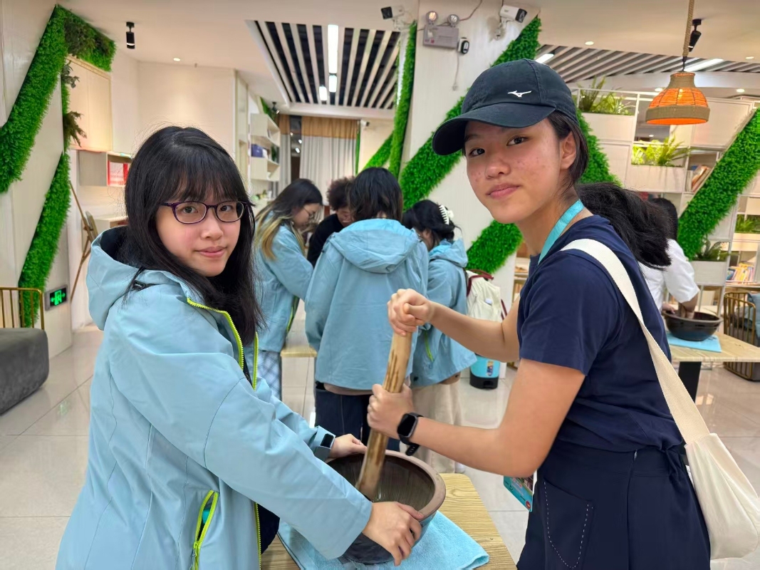 參觀木拱廊橋建築技藝的承安橋、寨里鄉以非遺竹藝打造的玲瓏橋。 活動期間,青年們漫步明清崇仁古街老巷,參與中藥香囊製作。在導師指導下辨識草藥、親手裝填,製作具安神等功效的傳統香囊。有同學分享:“親手調配藥材很奇妙,每種草藥都有不同氣味與故事。這個香囊讓我對中醫藥文化的實用性有了具體而生動的理解。”另一項深刻體驗是擂茶製作。在傳承人示範下,青年們親手操作擂缽與擂棍,將茶葉、芝麻、草藥等研磨成細膩茶泥,再沖入開水。品嘗自己勞動成果的學子感嘆:“從研磨到品飲,我深刻體會到非遺技藝的精髓,就在這份需要耐心與功夫的『手上傳承』。” 在參觀光澤縣博物館後,青年們集中品鑑多種當地特色茶,感受不同工藝帶來的香氣與口感變化。一位學子表示:“沒想到一個縣能有如此豐富的茶品類,每種茶都有不同的味道與故事,讓我對『茶文化』有了真切、立體的認識。”行程巧妙結合自然生態與文化遺產:在管蜜千畝梨園,盛放的梨花被解讀為中國田園詩意美學的生動寫照;觀賞白水際瀑布,聆聽生態理念講解;參觀油溪村擁有獨特的木拱廊橋建築技藝的承安橋、寨里鄉以非遺竹藝打造的玲瓏橋,領略傳統手工藝與營造智慧;傳統榨油古法演示,直觀展現傳統生產技藝中的樸素科學。